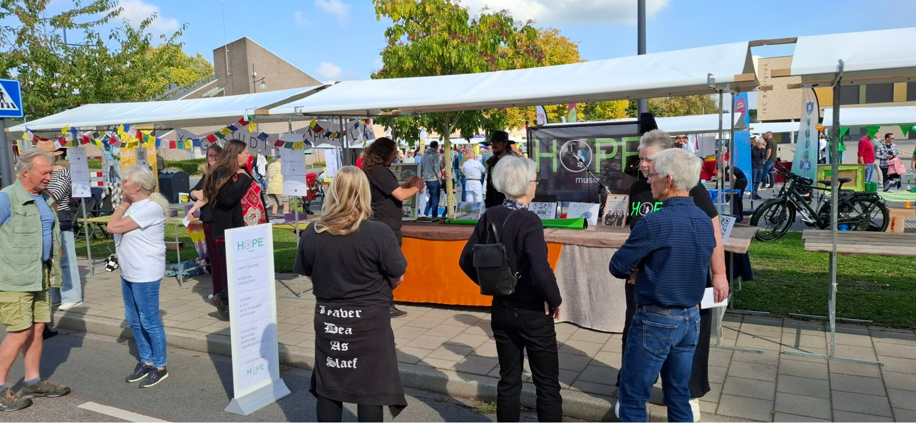 Foto beneden: Stand Hope Music tijdens evenement: Duuve te Gek 2025.
